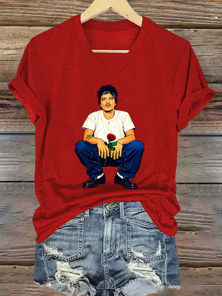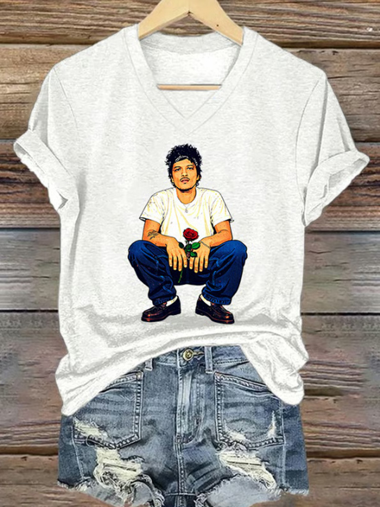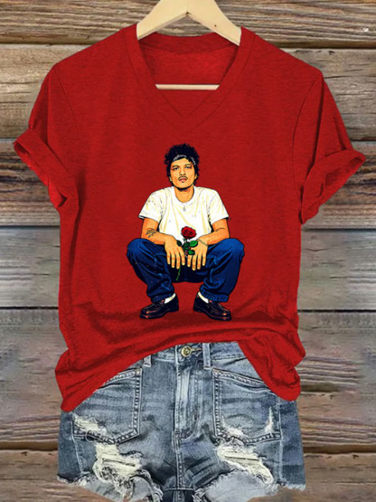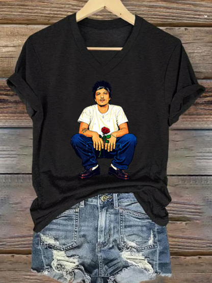 V-neck Retro The Romantic Tour Print T-shirt
